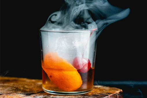 - Put a small rocks glass upside down on the oak and leave it to “smoke”