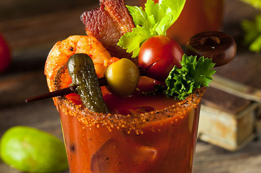 - Lime wedge, celery, asparagus, lemon, olives, prawns, and the list goes on and on to garnish